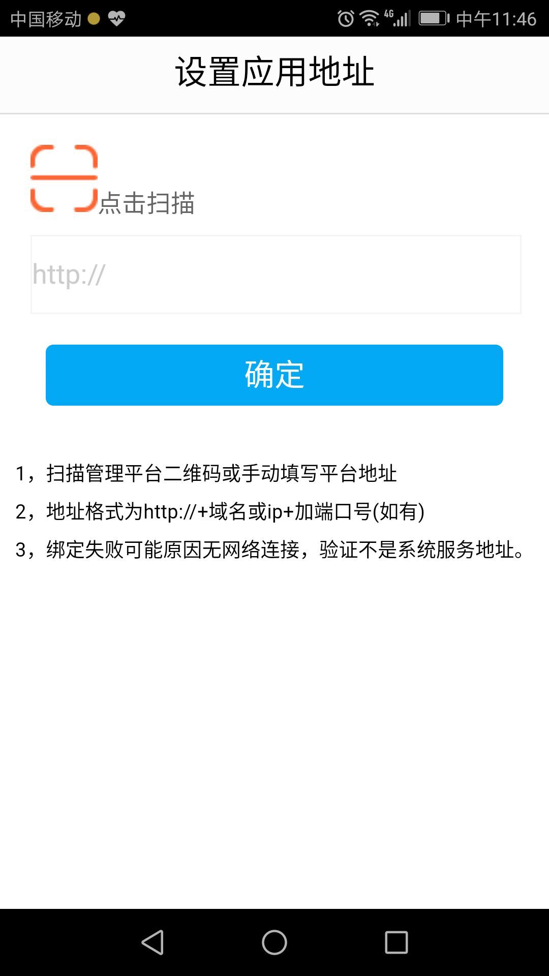 安装好APP后在设置应用服务器地址,如下图可以点击扫描按钮扫描右侧二维码,或直接输入地址: