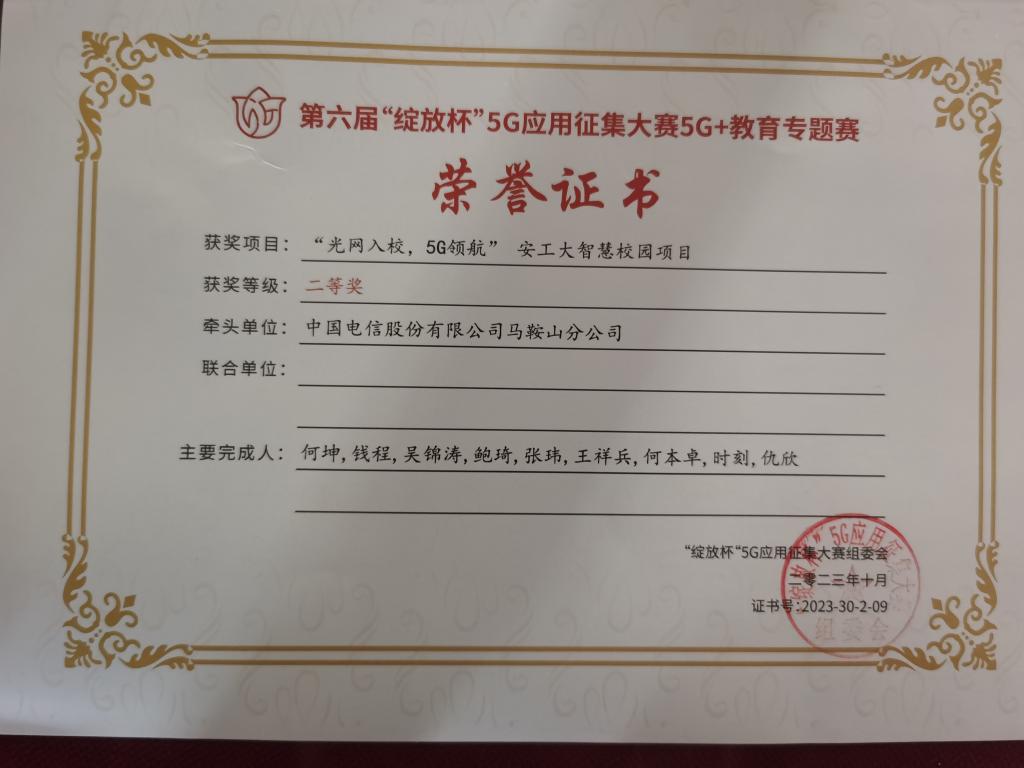 第六届“绽放杯”5G应用征集大赛5G+教育专题赛二等奖