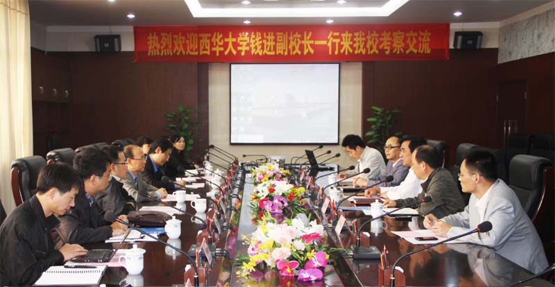 10 月29日 上午,四川省属重点大学西华大学副校长钱进等一行九同志来我校考察交流数字校园与校园一卡通建设情况,陈润副校长出席并主持了交流会,代表学校对钱进一行来访表示热烈欢迎,并介绍了我校事业发展和数字化校园建设总体效果。