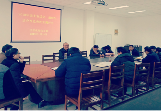 1月15日下午,信息化处党支部在处党员活动室组织召开了2018年组织生活会及党员民主评议会。支部8名正式党员、1名非党员中层干部和6名群众代表参加了会议。会议由支部书记张辉宜主持。