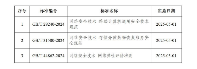 根据2024年10月26日国家市场监督管理总局、国家标准化管理委员会发布的中华人民共和国国家标准公告(2024年第24号),全国网络安全标准化