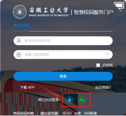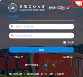 3.扫码登录:点击右上角图标切换至二维码登录页面,通过掌上安工大APP首页的【扫一扫】进行扫码登录。