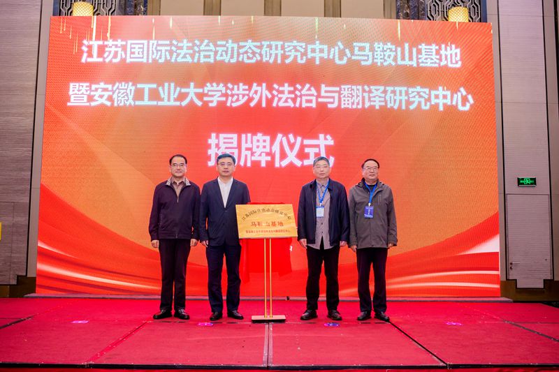 开幕式上举行了江苏国际法治动态研究中心马鞍山基地暨安徽工业大学涉外法治与翻译研究中心揭牌仪式。