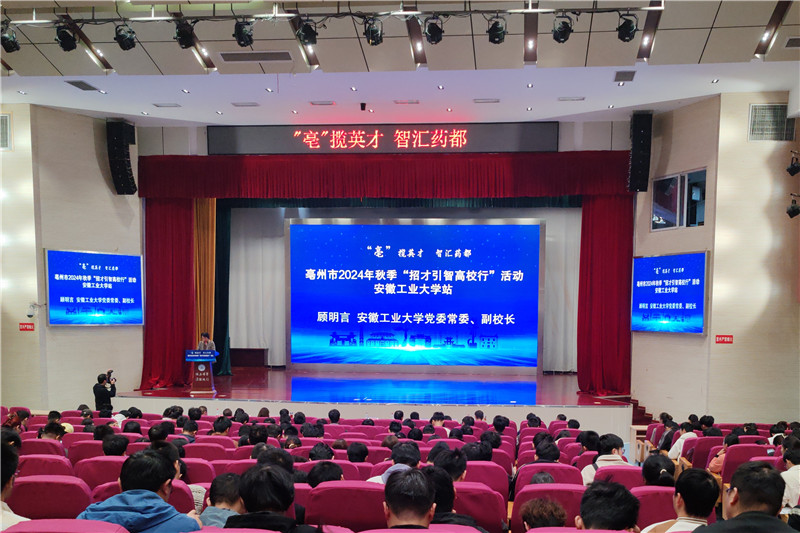 10月28日上午,亳州市“‘亳’揽英才 智汇药都”2024秋季招才引智高校行活动在秀山校区举办。校党委常委、副校长顾明言,亳州市委常委、副市长钟治峰出席活动,亳州市、涡阳县相关单位负责人、企业代表以及我校学生工作部(大学生就业创业指导中心)负责人、各学院分管学生工作负责人、2025届毕业班辅导员、学生代表近500人参加活动。