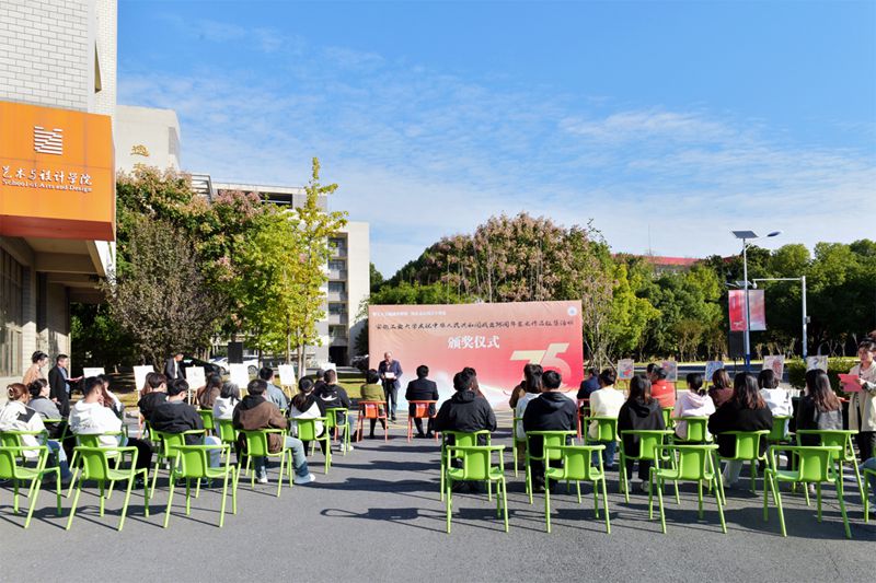 11月8日,学校举办庆祝中华人民共和国成立75周年师生艺术作品征集活动颁奖仪式。副校长郑啸出席,党委宣传部、离退休工作处、艺术与设计学院等单位负责人,校友代表以及全体获奖师生参加。
