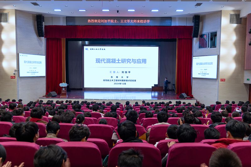 12月14日下午,中国工程院院士、东南大学首席教授刘加平来校作“现代混凝土研究与理论”专题报告。建筑工程学院党委书记张虎主持报告会,600余名师生代表现场聆听。