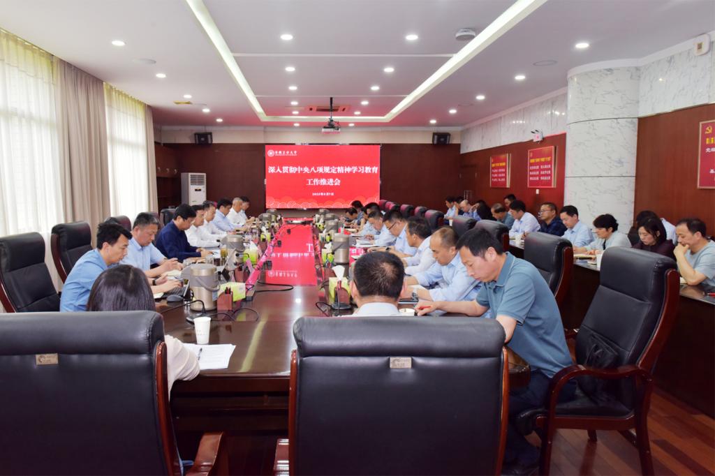 5月7日下午,学校召开深入贯彻中央八项规定精神学习教育工作推进会。校党委书记陆林,校党委副书记、校长曾杰,校领导郑啸、吴春雷、闵凡飞、郑利平、张世宏出席。学习教育工作专班工作组成员、各院级党组织书记参加会议。会议由校党委副书记王俊主持。