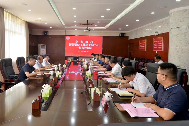 陆林代表学校对关锋一行表示欢迎,向新疆驻皖工作组长期以来对学校新疆籍学生教育管理工作的支持表示感谢。陆林指出,今年是我校建校64周年,经过多年的发展,学校已形成了以工为主,工、理、经、管、文、法、艺七大学科门类协调发展、具有鲜明行业特色的多科性大学。学校党委始终坚持以习近平新时代中国特色社会主义思想为指导,紧紧围绕立德树人根本任务,以党建为引领,在教育教学、人才培养、科学研究、服务社会等方面取得了一系列工作成效。学校高度重视少数民族学生的教育培养工作,成立了少数民族学生工作领导小组,统筹协调、扎实推进少数民族学生全面健康成长,积极创新和改进少数民族学生教育管理服务,铸牢中华民族共同体意识,不断践行为党育才、为国育人的初心使命。