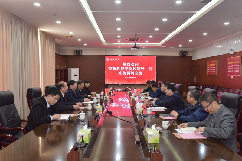 李震指出,安工大和安徽科技学院学缘相通、地缘相近、人缘相亲,建立了友好合作关系,共同为安徽高等教育事业发展作出了重要贡献。希望以此次交流调研为契机,进一步深化构建合作常态化、长效化机制,促进双方更好更快发展。