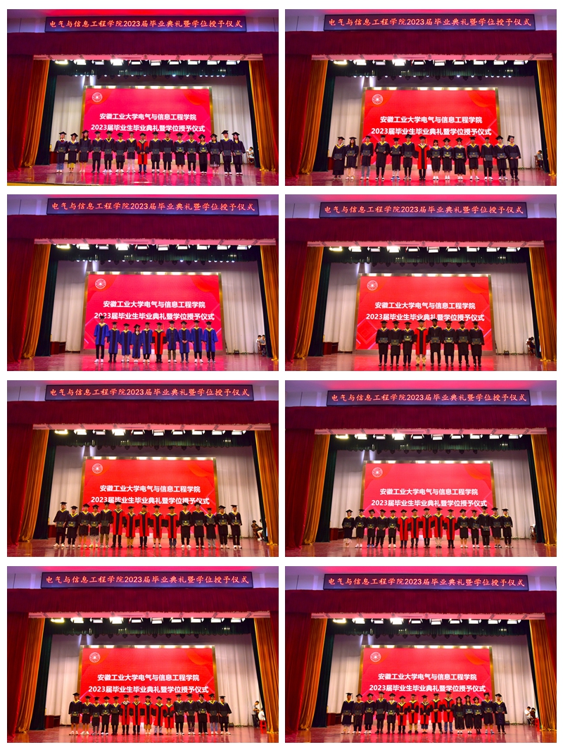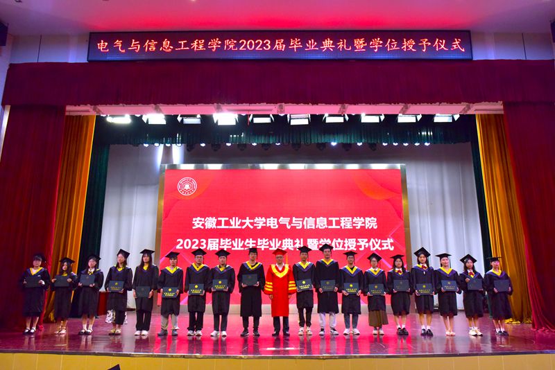 典礼在庄严的国歌声中拉开序幕。电气与信息工程学院党委书记丁忠利宣读了安徽省优秀毕业生、校优秀毕业生的表彰决定,院长王兵宣读了2023届校友联络员名单。在主席台就座的领导为安徽省优秀毕业生、校优秀毕业生颁发了荣誉证书,为校友联络员颁发了聘书。
