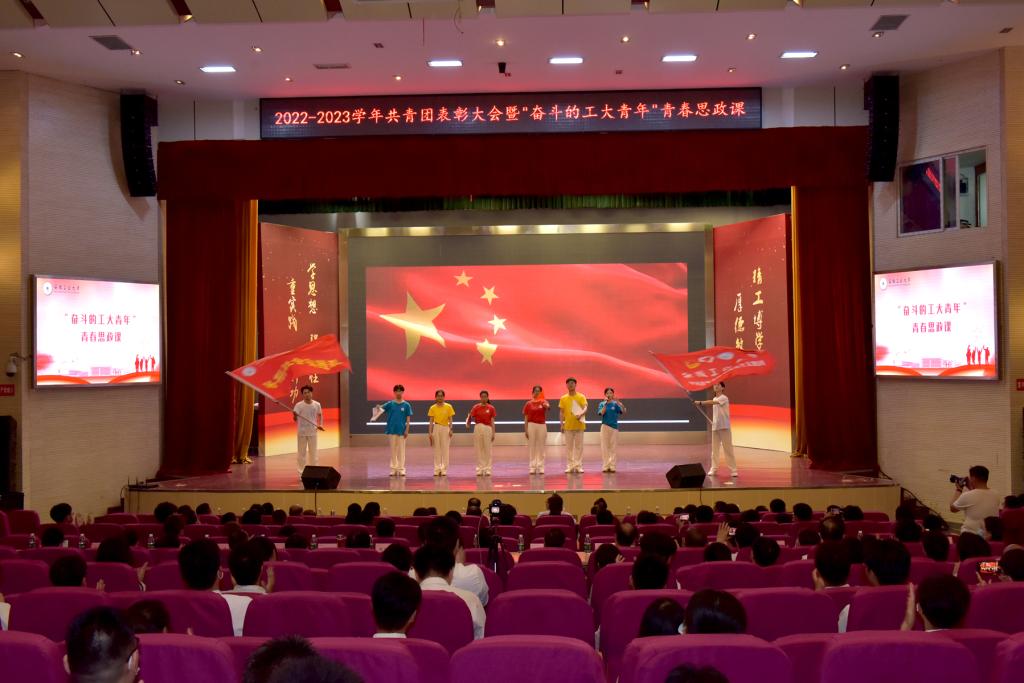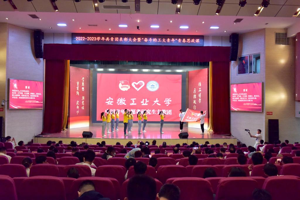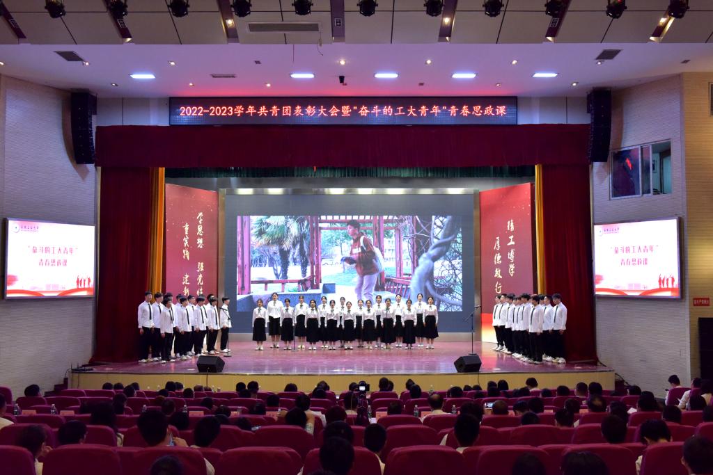 5月4日下午,我校在秀山校区举行“青春向党、奋斗强国”2022-2023学年共青团表彰大会暨“奋斗的工大青年”青春思政课。校领导陆林、魏先文、祖明、顾明言、刘明、潘淑琴、水恒福、曾杰、罗坤出席。党办校办、组织部、宣传部、学生工作部、研究生工作部、教务处等部门负责人,各学院党委书记、分管学生工作副书记、分团委书记以及共青团先进集体、先进个人代表和团员青年代表500余人参加。