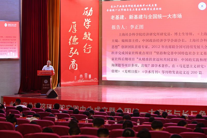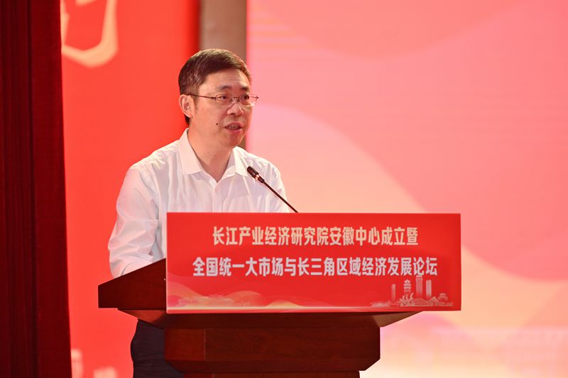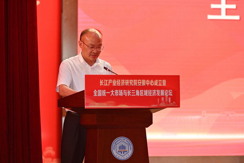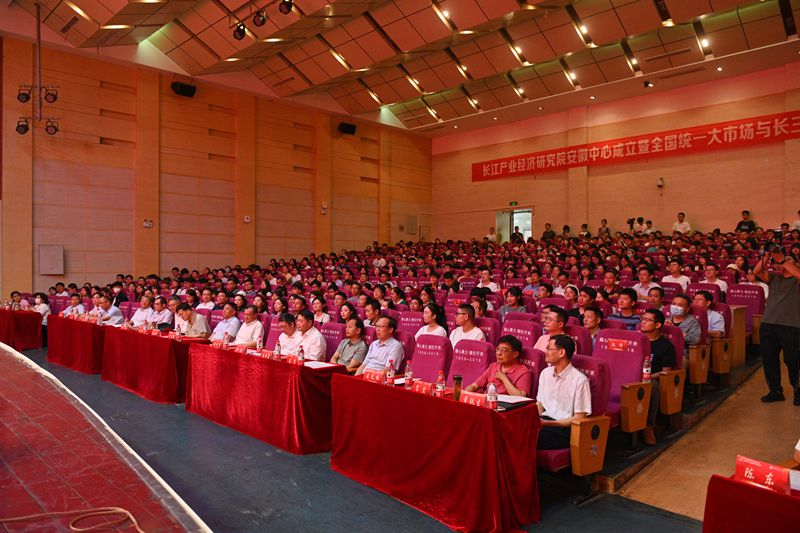 6月24日下午,我校与长江产业经济研究院主办的长江产业经济研究院安徽中心成立仪式暨全国统一大市场与长三角区域经济发展论坛在秀山校区新大学生活动中心举行。校党委书记陆林,安徽省社会科学院党组书记、院长曾凡银,南京大学副校长陆延青,马鞍山市委常委、宣传部部长陈永红出席。长江产业经济研究院专家学者,安徽省委宣传部、马鞍山市社科联、市科技局相关负责人,学校相关部门负责人、商学院师生代表等近600人参加。成立仪式由校党委常委、副校长王先柱主持。