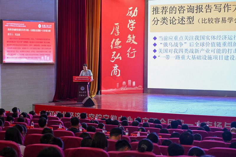 主题论坛由商学院院长章铁生主持。刘志彪教授、曾凡银教授、安徽大学创新发展研究院副院长宋宏教授、上海社会科学院李正图教授、商学院党委书记洪功翔教授分别作了题为《政府咨询研究报告写作分析:以建设全国统一大市场为例》、《功能区优势互补促进长三角共同富裕》、《长三角共建高标准市场体系》、《老基建、新基建与全国统一大市场》、《为什么是安徽率先跻身全国第一方阵》的主旨报告。(撰稿:武优勐 张苒 审核:洪功翔 杜飞)