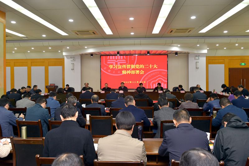 会上,校党委副书记、校长魏先文传达了《中共中央关于认真学习宣传贯彻党的二十大精神的决定》精神,他指出,党的二十大召开以来,学校组织多种形式收听收看大会盛况,广大师生员工对党的二十大胜利召开反响热烈;校党委第一时间召开党委全委会、党委常委会,深入学习党的二十大精神,审议学校学习宣传贯彻党的二十大精神工作方案,研究学习宣传贯彻党的二十大精神工作;校党委理论学习中心组召开学习(扩大)会,专题研学党的二十大精神;组建学校学习宣传贯彻党的二十大精神宣讲团,深入基层广泛宣讲;设立“研究阐释党的二十大精神”专项课题,组织优势研究力量对党的二十大精神进行理论性、学理性研究和阐释;全校上下深入开展“三会一课”、主题党日、支部共建、集中研讨等形式多样的学习宣传活动,举办学校首届党支部书记素质能力大赛,学思践悟党的二十大精神;教育部简报专题刊登我校依法治校工作开展情况,两项国家基金重点项目获批立项,与芜湖市人民政府、铜陵市人民政府、中国十七冶集团有限公司进一步深化合作,炼铁团队助力宝武集团建成全球首台工业级低碳炼铁高炉,知识产权转化取得新突破,学生在2022年全国大学生数学建模竞赛中获得佳绩,集中反映了学校在推动党的二十大精神落地落实方面取得了显著成效。