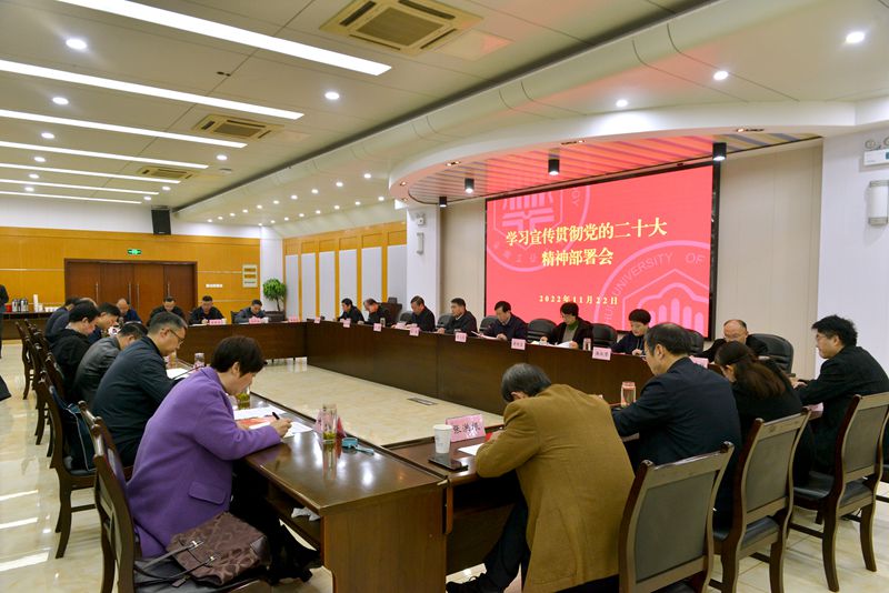 校党委副书记祖明解读了学校关于认真学习宣传贯彻党的二十大精神的工作方案和成立校学习宣传贯彻党的二十大精神宣讲团的工作通知,对学校学习宣传贯彻党的二十大精神5个方面工作安排和38项重点任务进行了部署,提出了具体要求。