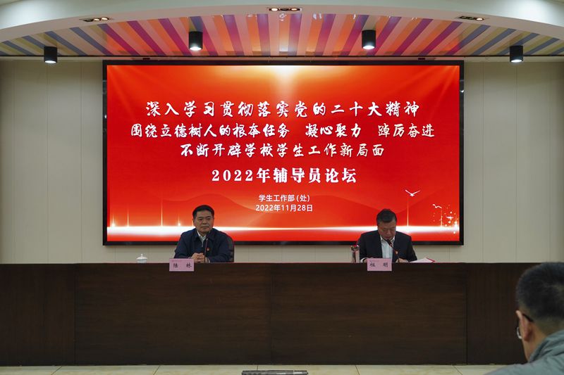 11月28日下午,2022年辅导员论坛在佳山校区学术会议中心举行。校党委书记、校学习宣传贯彻党的二十大精神宣讲团团长陆林作党的二十大精神宣讲报告。校党委副书记祖明出席,组织部、宣传部、学生工作部、研究生工作部、教师工作部、安全保卫部、团委、信息化处、后勤处负责人,各学院分管学生工作副书记以及全体辅导员参加。
