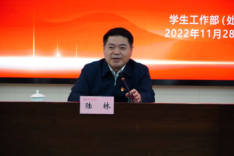 陆林强调,学习宣传党的二十大精神,既要整体把握、全面系统,又要突出重点、抓住关键。作为学工干部,作为辅导员,要面向青年学生抓好学习培训,集中开展宣讲,精心组织宣传,深入研究阐释,切实让广大青年学生在学习党的二十大精神过程中,坚持历史和现实、理论和实践、国际和国内相结合的办法,从整体到局部、再从局部到整体进行反复揣摩,全面掌握党的二十大精神,知其一更知其二,知其然更知其所以然。就如何以实际行动贯彻落实好党的二十大精神,陆林对广大辅导员提出坚持思想引领,做心中有信念的学工人;练就过硬本领,做手上有方法的学工人;勇于担当作为,做肩上有责任的学工人等要求,对各学院分管学生工作的负责人提出提高政治站位,推动学生工作出理念、提质量、树品牌;着眼长远,推动学工队伍求真知、勤工作、乐成长等要求。