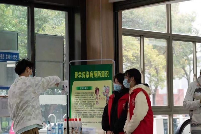 志愿服务我先行。支部党员、入党积极分子冲锋在前、彰显担当,积极加入学校青年大学生志愿服务队,在食堂出入口为就餐师生测量体温、在学生宿舍参与安全检查,并协助宿管员日常管理、问题反馈和沟通协调,提醒来往学生佩戴好口罩、不聚集、不串寝、勤洗手、常通风,做好自我防护。公法学院2020级公共经济管理硕士专业班长汪雨航,主动参与防疫物资发放,每日督促班级同学填写通风记录本,组织班级同学对宿舍楼和教学楼的楼梯、楼道等公共区域进行全方位打扫,对研究生自习室进行喷杀消毒,以实际行动发挥先锋模范作用。