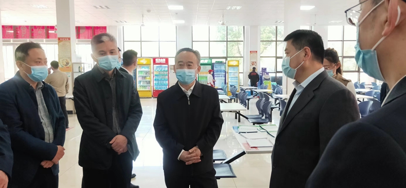 张岳峰一行在我校研究生食堂,详细询问食堂物资供应、菜品菜价、每日消杀以及工作人员健康监测等情况,对我校疫情防控期间安排部署和具体做法给予充分肯定,对全校上下坚决贯彻全省教育系统和属地疫情防控工作要求所付出的辛勤努力表示高度赞扬。