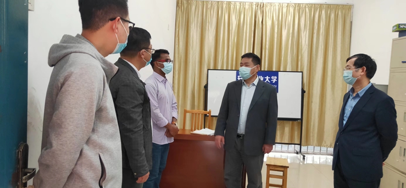 校领导一行还来到留学生公寓,陆林亲切询问了留学生疫情期间在校生活、学习和日常活动等情况,勉励大家做好短期学习规划和长期人生规划。他强调,当前疫情防控任务依然繁重,要进一步扎实落实疫情防控包保责任制,全面压实防控责任,进一步落实落细疫情防控工作,织密织牢疫情防控基层防线,尤其要充分运用好信息化手段,结合辅导员日常细致管理,确保全校所有学生日常安全;进一步加强疫情防控政策宣传,做好解惑释疑工作,教育引导广大师生员工按照全省教育系统和属地疫情防控政策要求,自觉履行疫情防控责任;进一步发挥辅导员、班主任等教育管理的骨干力量,切实发挥思想政治工作的教育引导作用;进一步加强沟通协调,形成工作合力,共同推进疫情防控工作落地落实。