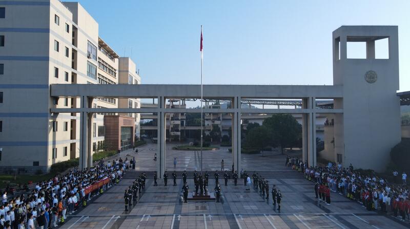 为热烈庆祝中华人民共和国成立72周年,10月1日上午,学校在秀山校区主教学楼广场举行升国旗仪式。校安全保卫部国旗护卫队全体成员、青年马克思主义培养工程培训班学员代表及2021级新生代表共计600余人参加活动。