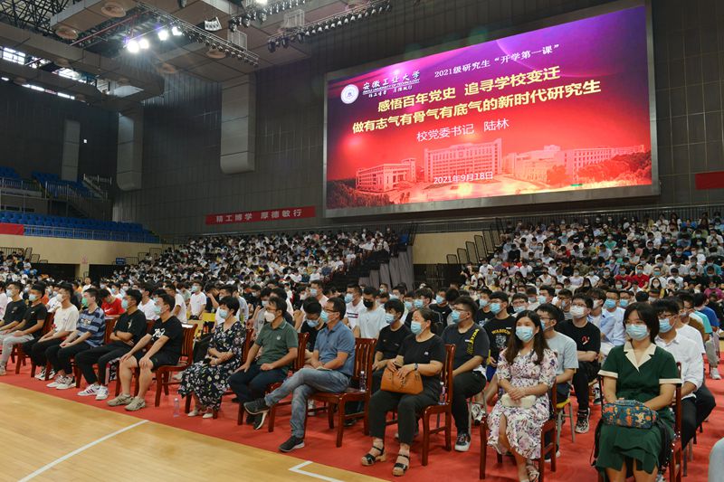 9月18日上午,校党委书记陆林为2021级研究生作了题为《感悟百年党史,追寻学校变迁,做有志气有骨气有底气的新时代研究生》的“开学第一课”辅导报告。校党委常委、副校长水恒福主持了报告会,研究生院(研究生工作部)全体人员,各培养单位研究生辅导员和2021级研究生1600余人聆听了报告会。